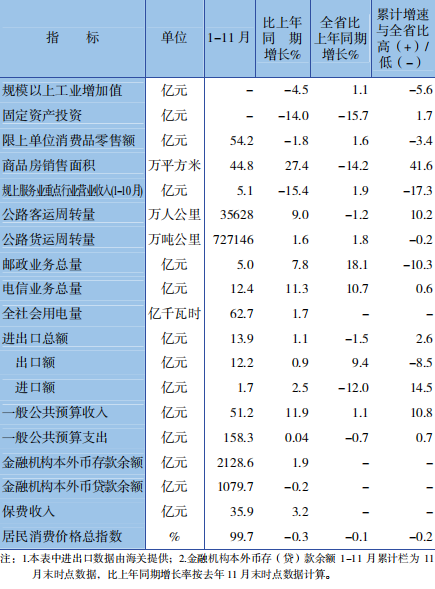固定资产投资累计增长速度 规模以上工业增加值累计增长速度 农村常住居民人均可支配收入累计增长速度 城镇常住居民人均可支配收入累计增长速度 工业用电量累计增长速度 商品房销售面积累计增长速度 居民消费价格指数累计涨跌幅 出口额累计增长速度 进出口总额累计增长速度 一般公共预算收入累计增长速度 社会消费品零售总额累计增长速度