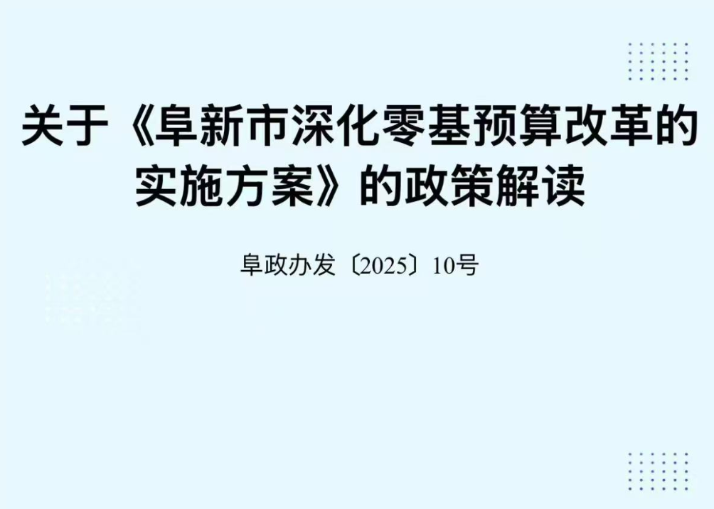 • 关于《阜新市深化零基预算改革的实施方案》的政策解读