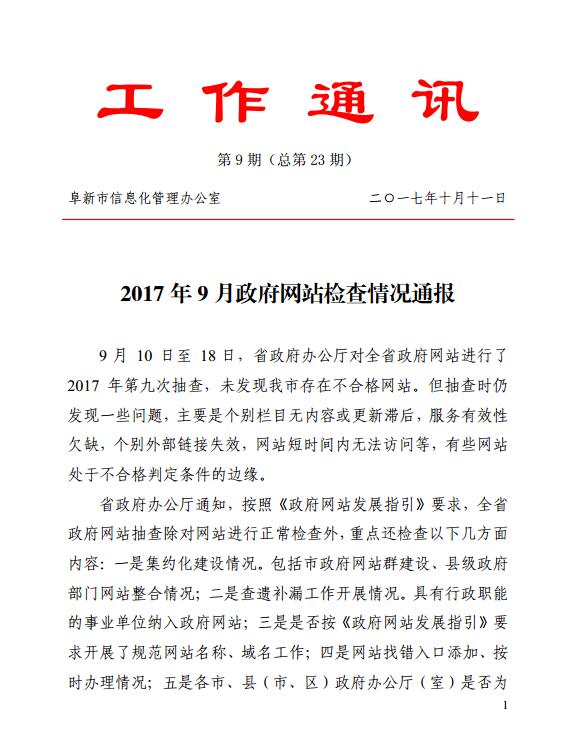 2017年9月份政府网站检查情况通报(《工作通讯》2017年第9期)