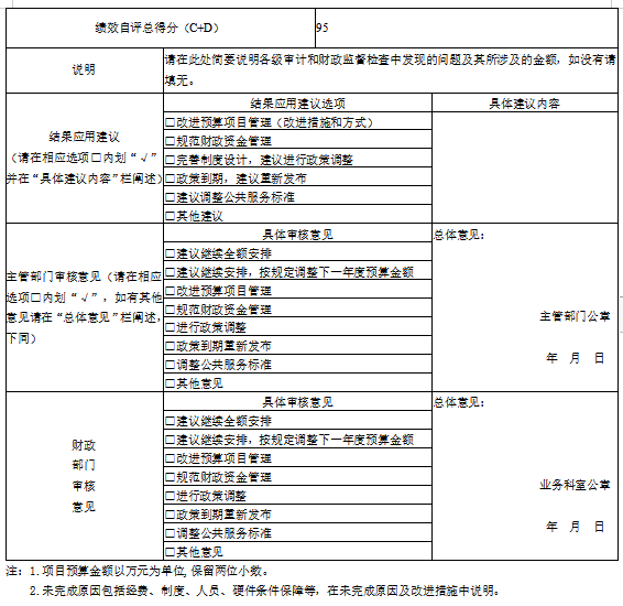 根据预算绩效管理要求,我单位组织对2021年度预算项目支出全面开展绩效自评,共涉及预算支出项目1个,涉及资金5万元,自评覆盖率达到100%,自评平均分95分。组织对1个单位开展整体绩效进行全面自评,涉及资金9591.89万元,自评覆盖率达到100%,自评平均分97.3分。