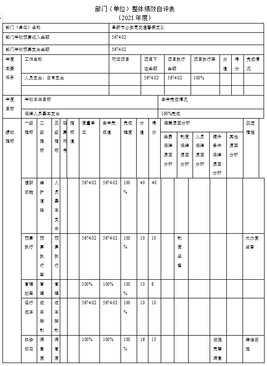 2021年度我部门无项目支出绩效自评。根据预算绩效管理要求,我部门组织对2021年度预算项目支出全面开展绩效自评,涉及资金5674.02万元,自评总评价得分91分。